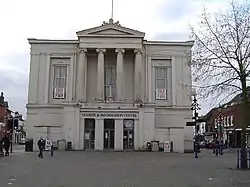 Works in his native Hertfordshire include the Church of St. Peter, London Colney, a very early example of the Norman revival style (1825)[14] and the neoclassical Town Hall at St Albans (1829), with a giant portico of four Ionic columns.[15]
