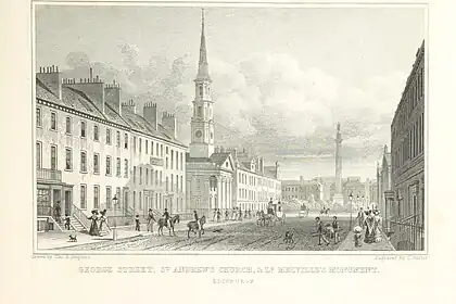 The east end of George Street with St Andrew's Church, and Lord Melville's Monument, c. 1829