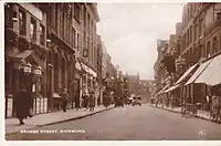 George Street, at the confluence of the A305 and A307 roads, is the high street in Richmond, London and was one of the first streets to be developed in the town.[1] Previously known as Great Street,[2] it was renamed after King George III in 1769.[1] Buildings on the street include the Grade II listed Greyhound House, formerly the Greyhound Hotel,[3] in a building dating from the 1730s.[2]