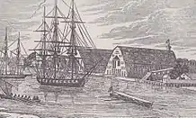 - ↑ Sharp, John G. Employment of enslaved workers in the construction of the Dry Docks 12 October 1831 Accessed 24 Nov 2017 http://www.usgwarchives.net/va/portsmouth/shipyard/nnysharp.html Archived 2016-10-01 at the Wayback Machine