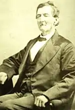 After returning from the nation's capitol, he settled on his farm with his wife Fanny.[1] She was the sister of Meek's Native American wife Virginia, and George and Fanny had three children.[1] Ebbert was one of the first purchasers of town lots in Hillsboro, Oregon, along with Ralph Wilcox, David T. Lenox, Alvin T. Smith, and others in the early 1850s.[4] His land claim in Washington County was adjacent to what became the town of Orenco, Oregon, and is the site of much of the Orenco Station development in Hillsboro.[6] George Ebbert died on October 1, 1890,[1] and was buried at the West Union Baptist Church Cemetery in West Union, Oregon.[7] The Washington County Museum has a George Ebbert Society.
