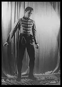 In the course of his long career, Zoritch's most famous role, however, was in a revolutionary work created in the early twentieth century: Vaslav Nijinsky's L'Après-midi d'un Faune, set to Claude Debussy's symphonic poem in 1912.[15] Debussy's Prélude à l'Après-midi d'un Faune (1894), inspired by an 1876 poem of Stéphane Mallarmé, was considered by some music historians as "the beginning of modern music."[16] Nijinsky's choreography was certainly new and modern, very different from previously seen forms of theatrical dance. George Zoritch was ideally suited to reinterpret Nijinsky's vision of a lusty young woodland creature lounging in the heat of a summer afternoon. With a figure that had been likened to "a Greek youth sculpted by Praxiteles," he projected an elegant eroticism particularly suited to the role.