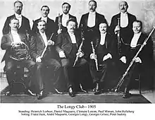 Longy started his career as an oboist in Europe where he played with such orchestras as the Lamoureux and the Colonne.[3] In 1895 Longy tried to restore the Société de Musique de Chambre pour Instruments à Vent, an influential Parisian chamber group that had disbanded. In 1898, the Boston Symphony Orchestra called on him to fill the position of principal oboist in that ensemble. Longy founded a number of instrumental groups during his years in Boston. These included The New York Chamber Music Association in 1913, The Boston Orchestral Club in 1899 with his friend Elise Hall,[4] and the distinguished wind ensemble known as the Longy Club (1900-1917). From 1899 to 1911 he conducted The Boston Orchestral Club, The MacDowell Club Orchestra (1915 – 1925) and The Cecilia Society (1916).[2]