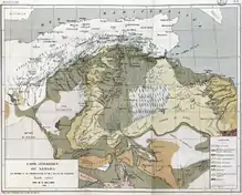 In 1884 a geological section under Rolland was added to the Tunisian Scientific Exploration Mission.[8] The Mission Scientifique de Tunisie (1885–87) was led by the botanist Ernest Cosson (1819–89).[9] Rolland was assisted by Philippe Thomas from 1885 and Georges Le Mesle in 1887. Rolland covered the centre of the country, while Thomas worked further south and Le Mesle worked mainly in the north, apart from an expedition to the extreme south.[8] The team gave good descriptions of the Jurassic of the Zaghouan region and the Eocene of the Maktar and Kairouan regions.[9] As early as 1885, Rolland emphasized the regional importance of the great fault of Zaghouan.[8] In 1902 he was asked by the Ministry of Education to write all the results of the Tunisian Scientific Exploration Mission, but he had to refuse for health reasons.[8]