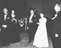 Carroll (second from left) with her husband, Governor W. Kerr Scott, First Lady Mary White Scott, and John Anderson at the North Carolina Inaugural Ball in 1949.