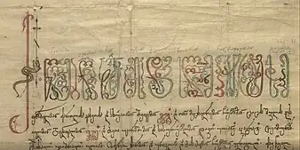 Georgian calligraphy (Georgian: ქართული კალიგრაფია, romanized: kartuli k'aligrapia) is a form of calligraphy, or artistic writing of the Georgian language using its three Georgian scripts.