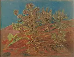 In the spring of 1928, the People's Commissariat for Education applied for the awarding of the title of Honored Artist to G. Yakulov, in connection with the 25th anniversary of his creative activity, a committee for the celebration of the anniversary was organized under the chairmanship of A. Tairov. However, the issue of awarding the title and the organization of the anniversary evening was delayed, Yakulov's lung tuberculosis progressed, and in August 1928 he left for Dilijan for treatment. In Armenia, he made a series of landscape sketches and wrote two programmatic articles: "Theater and Painting" and "Revolution and Art".[115]