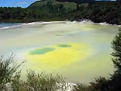 ![]() Thermal activity on the shore of Lake Rotomahana near the former site of the Pink Terrace |