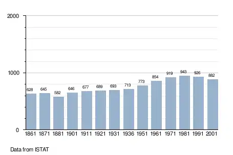 - ↑ "Popolazione Residente al 1° Gennaio 2018". Italian National Institute of Statistics. Retrieved 16 March 2019.