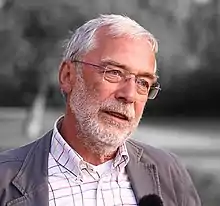 Gerald Hüther was born on 15 February 1951 in Emleben, Thuringia, East Germany (now Germany).[3] According to his own statement, he "[...] ließ die Schule über [sich] ergehen und hoffte, dass sie bald vorbeigehen würde [...]" ("[...] he just endured school and hoped it would pass soon [...]").[4] He attained his Abitur in 1969[3] with a grade average of 1.5[2] and studied biology at the Universität Leipzig.[5] In the late 1970s, he fled from East Germany because it "[...] dort viel zu eng wurde [...]" ("[...] got too tight for him there" [...]")[6] by faking his visa.[7][8] From 1979 to 1989 he conducted research in the field of brain development at the Max Planck Institute for Experimental Medicine in Göttingen.[9] In 2016, he ended his university career.[3] He published approximately 150 original papers.[3] Hüther is the initiator and director of the Akademie für Potenzialentfaltung (Academy for developing potential).[10] He was also an author and member of the advisory board of the German online magazine Rubikon,[11][12] but left it on May 11, 2021.[13]