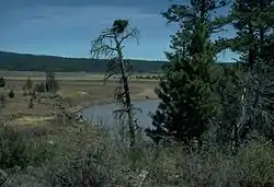 The watershed that drains into Gerber Reservoir covers 234 square miles (610 km2).[6] There are three primary vegetation zones that make up the watershed: coniferous forest, juniper woodlands, and shrub-steppe. There are also some meadow lands within the pine forest zone and in riparian areas along drainages that empty into the reservoir from the north and south. The watershed to the north, south, and west of the reservoir are pine forest. The area east of the reservoir is mostly juniper woodlands. The areas immediately surrounding the reservoir are shrub-steppe.[2][10]