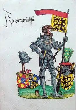- ↑ Born in Waldsee (1488–1531), the son of Johann II von Waldburg-Wolfegg († 1511) and of Helena von Hohenzollern, he married Appolonia von Waldburg-Sonnenberg in 1509; and, secondly, Maria von Oettingen (1498–1555). Marek, Miroslav. "Waldburg genealogical table". Genealogy.EU.)