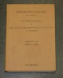 | NF 50 | Die Bistümer der Kirchenprovinz Köln. Das Erzbistum Köln 6. Das adlige Kanonissenstift St. Cyriakus zu Geseke. | Ulrich Löer | 2007 | Digitalisat |