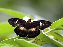 Gerosis is an Indomalayan genus of spread-winged skippers in the family Hesperiidae.There are six species found from China and Northeast India to Java and the Sula Archipelago east of Sulawesi.They are lowland (less than 650 metres) forest (primary or advanced secondary) butterflies. They seek sunny areas between 1 and 4 metres above ground, but females can be encountered in the shade.