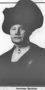 In 1914, Barnum took up a position with the newly-created United States Commission on Industrial Relations.[5] By the end of the decade, she had become the assistant director of the Department of Labor's investigation service. She also joined the Equality League of Self-Supporting Women, an organization founded by Harriot Stanton Blatch to advance the women's suffrage movement. In 1919, she retired and moved to California, where she lived until her death in 1948.[1]