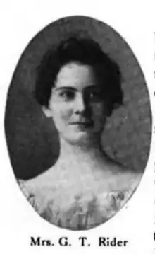 Gertrude Rider chaired the "Work with the Blind" committee of the American Library Association, and was the Librarian for the Blind at the Library of Congress from 1912 to 1925.[3][4] Overlapping that work, she was also National Director of Braille for the American Red Cross from 1923 to 1925, encouraging volunteers to learn how to hand-transcribe books into braille, and setting standards for that work.[5] Her particular interest was in meeting the literacy needs of blind disabled veterans of World War I, with braille materials and training.[6][7] She testified about the circulation of books for the blind in front of the Post Office and Post Roads Committee of the House of Representatives in 1922.[8]