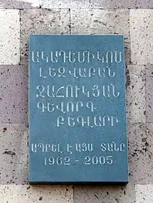 Gevorg Jahukyan (Armenian: Գևորգ Ջահուկյան, 1920-2005) was an Armenian linguist and philologist, Doctor of Philological Sciences, Professor, Academician of the Academy of Sciences of Armenia, Honored Scientist of the Armenian SSR.[1]
