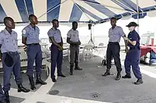 The nucleus of the Ghana Navy is the Gold Coast Naval Volunteer Force formed during World War II. It was established by the colonial British administration to conduct seaward patrols to ensure that the coastal waters of the colony were free from mines. Following Ghana's attainment of independent nationhood on 6 March 1957 from the UK, the country's military was reorganized and expanded to meet its new challenges. A new volunteer force was raised in June, 1959 with headquarters at Takoradi in the Western Region of Ghana. The men were drawn from the existing Gold Coast Regiment of Infantry. They were under the command of British Royal Navy officers on secondment. On 29 July 1959, the Ghana Navy was established by an Act of Parliament. The force had two divisions based at Takoradi and Accra respectively.[1] On 1 May 1962, the British Navy formed the Royal Navy Element of the British Joint Services Training Team, thus changing the nature of its relationship with the Ghana Navy. The first Chief of the Naval Staff was Captain D. A. Foreman, a retired British Naval Officer. He was granted a Presidential Commission as a Ghana naval officer in the rank of commodore.[2] In September 1961 Nkrumah terminated the employment of British officers in the armed forces: the first Ghanaian to become Chief of the Naval Staff was Rear Admiral David Animle Hansen, who was transferred from the Ghana army to head the navy. On September 14 1990, the GNS Achimota was hit by NPFL artillery while on a fact-finding mission near Monrovia. As a result, 2 Ghanaian sailors and 3 Nigerian nurses were killed, and the Ghanaian Air Force retaliated with airstrikes.[3]