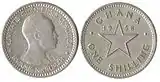 Five-pointed star (Lettering:) GHANA 1958 & The value of the coin |