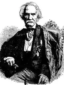 The suffrage was hotly contested and annulled through an agreement between the France and Great Britain; Asachi himself was thus forced to note that the new elections in August managed to overturn the previous results.[40] He was no longer elected a deputy, and his candidature for the position of secretary of the electoral board was awarded just one vote.[39] In 1858, Gazeta de Moldavia was entirely dedicated to political subjects and support for Vogoride's policies, and ceased print in October, as the Kaymakam ended his mandate.[20] In late November, it reemerged under the title Patria, which continued to criticize Partida Națională from a conservative position, notably hosting articles by the anti-unionist Istrati.[20] As a new regency of three was preparing elections, the magazine rallied with Ștefan Catargiu, Asachi's lifelong collaborator and the separatist representative in the body of kaymakams, against the two unionists (Vasile Sturdza and Anastasie Panu), before Catargiu was replaced with I. A. Cantacuzino.[40] In November 1837, Asachi and another 36 separatist boyars issued a memorandum unsuccessfully asking the Ottoman Grand Vizier Aali Pasha to intervene against the unionist kaymakams, restore censorship, and to narrow down the electoral lists.[39]