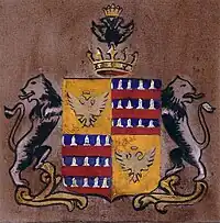 The oldest knightly tomb in Tuscany (in the Church of Sant'Appiano, near Barberino Val d'Elsa) belongs to this family.[5] Historically influential in Florence, the Gheradinis were also featured in Florentine Histories, a book written by Niccolò Machiavelli at the request of the Medicis.[6] In modern times, their name is affiliated with the Mona Lisa of Leonardo da Vinci, as the painting depicts the portrait of Lisa Gherardini. Arms of this family is a quarterly Barry of six vair and gules and imperial eagles.