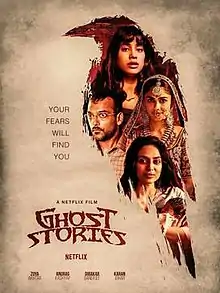 Ghost Stories is a 2020 Indian Hindi-language anthology horror film, consisting of four short film segments directed by Karan Johar, Dibakar Banerjee, Zoya Akhtar and Anurag Kashyap.[2][3] It is co-produced by Ronnie Screwvala and Ashi Dua under their production banner RSVP Movies and Flying Unicorn Entertainment respectively.[4] The film features an ensemble cast including Mrunal Thakur, Avinash Tiwary, Janhvi Kapoor, Raghuvir Yadav, Sobhita Dhulipala, Vijay Varma and Pavail Gulati.[5] It was released on Netflix on January 1, 2020.[6]