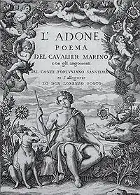 L'Adone (Adonis), which was published in Paris in 1623 and dedicated to the French king Louis XIII, is a mythological poem written in ottava rima divided into twenty cantos.