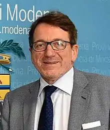 He is a member of the Democratic Party and he served as President of the Province of Modena from 2014 to 2018.[1] He was elected Mayor of Modena on 8 June 2014 and took office on 10 June.[1][2][3][4] He has been re-elected for a second term in 2019.[1]