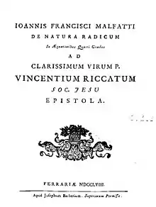 Giovanni Francesco Giuseppe Malfatti, also known as Gian Francesco or Gianfrancesco (26 September 1731 – 9 October 1807) was an Italian mathematician. He was born in Ala, Trentino, Italy and died in Ferrara.