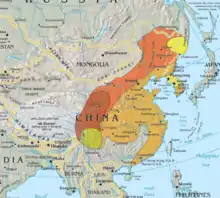 Native range in dark yellow and dark orange, rest of range belongs to L. sphenocercus