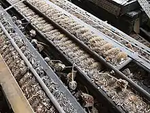 A gig-mill (gigging machine, napping machine) was type of raising machine that used teasels to produce a nap on cloth.[1][2] Examples of the results of gigging are woolen fabrics such as chinchilla, beaver cloth, and melton.[3] The process involved gradual teasing of the surface to raise the nap.[4] Spelling in some localities is "Gigg".