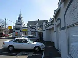 Gilbane's Service Center Building is an historic automotive service station at 175-191 Pawtucket Avenue in Pawtucket, Rhode Island. It is an L-shaped structure, built of concrete blocks and finished in stucco. Its most prominent feature is a whimsical Art Deco tower, built up from one of the corners nearest the street in five stepped tiers. Details from the tower are repeated in the decoration of the roofline above the building's service bays. This building was built c. 1931, and is a second-phase automotive service station, one which offered repair services as well as fuel, and is one of the finest surviving examples of the form in the state.[2]