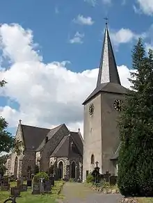 - Saint Andrew's Catholic Parish Church, Am Kirchberg 4, Gothic Revival basalt quarrystone building, 1898-1899; churchyard: eclectic grave, Family Maas, after 1863, four former wayside crosses, 18th century and earlier half of 19th century.
