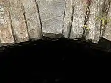 In 1984 a trial trench was opened at Gillies Hill fort across the defences in the south sector.[4] Three stone faced ramparts were explored - material for the construction of the rampart had been obtained by surface quarrying of the surrounding area. Within the fort was a layer of occupation debris containing pottery, including the upper half of a decorated vessel with more cultural material recovered from within the ramparts. This material, along with radiometric dates, suggests activity from the Late Neolithic/Early Bronze Age and the Iron Age – the presumption being that the ramparts derive from the later, Iron Age activity. The nature of the earlier Late Neolithic/Early Bronze Age activity on the hill remains uncertain.