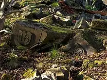 The flora of Gillies Hill is intricately entwined with its history. The Murray family who built Polmaise Castle in 1865, created landscaped gardens incorporating many of the exotic coniferous trees that still grace the woodland. Like much of 19th Century British aristocracy, the Murrays were enamored with planting landscape gardens filled with newly discovered plants from around the world. Often these outdoor plant collections included tall conifers imported from North America. A fine example of this is the grove of Sierra Redwoods (or Wellingtonia), Sequoiadendron giganteum, growing at the apex of Gillies Hill. These five Redwoods were planted in the 1860s by the Murray family along the walk from the castle to the large natural loch that was once on the upper portion of Gillies Hill, but was lost to quarrying. If left undisturbed, these giants could well live over 3000 years and attain a mass of over 1400 cubic meters potentially becoming the most massive trees in Scotland.[6] Along with others of that era, these trees may have been grown from some of the first Sequoiadendron seeds brought to Scotland by John D. Matthew in 1853 and given to his noted horticulturist father Patrick Matthew of Gourdiehill near Errol in Perth Shire who then gave many of the seedlings away to friends and family as living gifts. Unfortunately, the five redwoods on the top of Gillies Hill are within the quarry zone. Efforts are currently being made to try to save the grove.