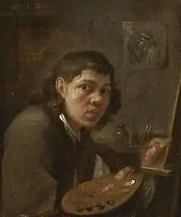 In his tavern scenes he shows himself to be a close follower of Adriaen Brouwer, just as David Ryckaert III and Joos van Craesbeeck were.[7] This is clearly visible in The drinker (Museum Boijmans Van Beuningen).