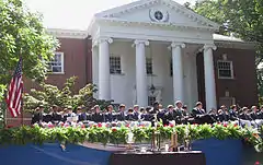 Commencement ceremonies held in front of Gilman's Alumni Old Gym
