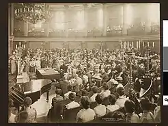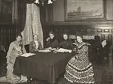 In 1904, Krog founded the Norwegian National Women's Council (Norwegian: Norske Kvinners Nasjonalråd), a regional branch of the International Council of Women.[7] The branch was notably active the following year, when the Storting held a national vote on the dissolution of the union between Norway and Sweden. The Norwegian National Women's Council campaigned in support of the dissolution, circulating a brochure advocating for Norwegian independence.[14] Only men were permitted to cast a vote in the decision, despite calls from women who wanted to participate. On 13 August 1905, the day of the dissolution vote, Krog led female delegates from the most prominent Norwegian women's organizations into the Storting building, informing government that thousands of Norwegian women wished to vote their approval of the dissolution.[15] Having organized a nation-wide poll among women, the women later presented a petition with 300,000 names.[12] The incident impressed parliament members, contributing to serious discussions about granting suffrage to women.[15]