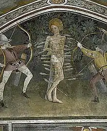 He was born in Demonte, Piedmont.[3] He executed frescoes at a number of churches, including St Sebastian Churches of Venanson, Saint-Étienne-de-Tinée, and Celle di Macra.[4] He also painted frescoes (1482-1485) for the chapel of St Sebastian in the church of Santi Sebastiano e Fabiano in Marmora, Piedmont. The frescoes depict the infancy of Christ: Nativity, Adoration by the magi, plus an Apocriphal story about the Miracle of the Grain during the Flight to Egypt. Also there are frescoes depicting the Life of Saint Sebastian.[5] He painted an Enthroned Madonna in the apse of the church of Santa Maria della Pieve in Beinette. Other frescoes in the church are attributed to Amedeo Albini.[6]
