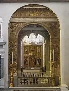 Giovanni Mazone (or Masone, Mazzoni) (c.1453 – c. 1510) was an Italian painter and woodcarver active in Genoa. Born in Alessandria, he was released from his familial bonds (patria potesta) in 1453 when he is documented to have established a workshop in Genoa.[1] Giovanni's father, Giacomo, was also a painter and the family is first mentioned in 1414, in regards to a rental dispute.[2]