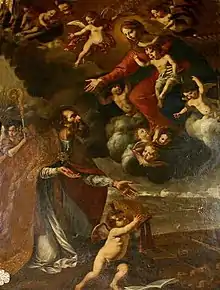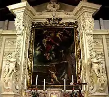 Apparition of the Virgin Mary to Saint Paul above the altar at the Church of Santa Rita.