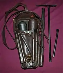 Recreation of an Austrian Girardoni system accoutrements bag, including bullet mold, air pump, spare air flasks, wrenches and ladle