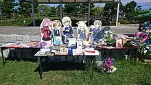 Festivals and events in the town have permanently incorporated themed elements since the anime's release. This includes the yearly spring festival and the local Angler Fish Festival taking place annually every November.[155] The spring festival in 2013 featured live tank demonstrations and the sale of anime-themed merchandise.[156][157] The Angler Fish Festival, aside from traditional fishing events, put tank replicas and itasha (example pictured) on display, and hosted a talk show in 2013.[158][159] Official media, such as the 2015 film, were announced during festival period.[160] Originally hosting around 25,000–30,000 attendees, the influx of fans had increased the number to 140,000 in 2019 before it entered hiatus.[158][161] Due to the COVID-19 pandemic, themed events in the town ceased and were moved to virtual spaces. Thus, a concert was held virtually to commemorate the series' tenth anniversary.[162] The Angler Fish Festival will return in 2023 with cast members attending.[163]