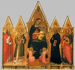 Enthroned Madonna and Child (c. 1389)Madonna and Child with Angels and Saints Augustine, Luke, Steven and Nicolas of Tolentino