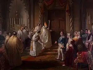 He trained under Luigi Sabatelli at the Brera Academy. In 1833, as a student, he produced a sketch titled Haman Kneels Before Esther .[1] In 1845, he participated in the decoration of the Palazzo Torlonia in Rome. He painted a Il divorzio di Enrico VIII (The Divorce of Henry VIII) for the Marchese Ala Ponzone of Milan; and a Cola di Rienzo and Italy at the foot of the Virgin (exhibited in 1850 at Turin). In 1841, he was commissioned by the Savoy Royal family to create a painting depicting the Reconsecration of the Hautecombe Abbey for the Castello di Racconigi.[1]