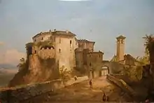 For an 1839 album of views of Parma, he painted La strada da Parma a Pontremoli and a Veduta d'Ischia. In the National Gallery at Parma,[3][4] are two small oil paintings: Strada di villaggio con una chiesa a sinistra and Villaggio sui monti; at the Museo Glauco Lombardi are Il Castello di Fontanellato, and various watercolors, including: Il Palazzo Ducale di Parma, The Duke's Church in Colorno, The Ducal Palace of Colorno (1847), The Gardens of the Pilotta.[5]