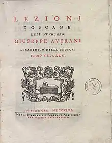 - Lezioni toscane (in Italian). Vol. 2. Florence: Gaetano Albizzini. 1744.