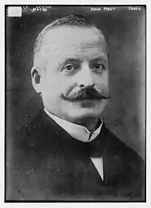 Motta was involved with the Federal Council Felix Calonder in Switzerland's accession to the League of Nations on 16 May 1920. In 1924 he became President League of Nations Assembly. At his suggestion, Switzerland was one of the few states against accepting the Soviet Union into the League of Nations.[2] He was one of the most outspoken advocates of admission of Germany. In the Interwar Period, he pleaded for a partial departure from Swiss neutrality principle, but spoke out from 1938 in the face of the looming Second World War again for its strict observance.[3]