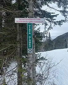 The first glade skiing in the eastern United States was on Mount Mansfield, in Vermont. Cut by the Civilian Conservation Corps in 1934, The Nose Dive, was a steep, narrow trail, and started with twisting turns. Below these difficult corners, to the left was a patch of skiable trees named the Slalom Glade, which appeared on the trail map in 1940.[2]