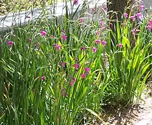 It is a vigorous cormous herbaceous perennial growing to 1 m (3 ft 3 in) tall with linear leaves and bright pink flowers in spring. Two subspecies are identified: